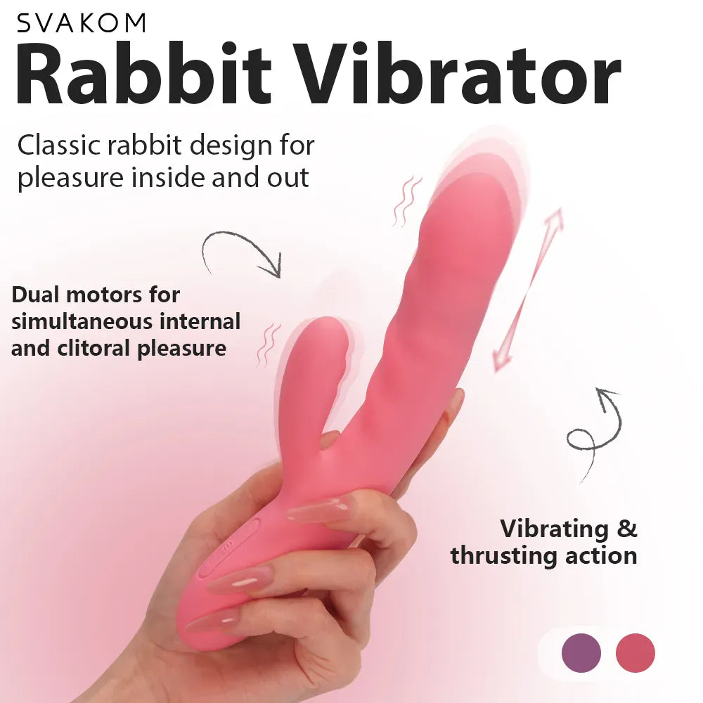 Avery, the Thrusting Rabbit Vibrator that is set to redefine your intimate experiences with 5 thrusting and 5 vibrating modes, each with 5 varying intensities. At the heart of Avery lies a thrusting cushioned head, meticulously designed to mimic the most intimate of experiences, while an independent clitoral stimulator focuses on your most sensitive area, creating a symphony of sensations that will have you soaring to new heights of pleasure.