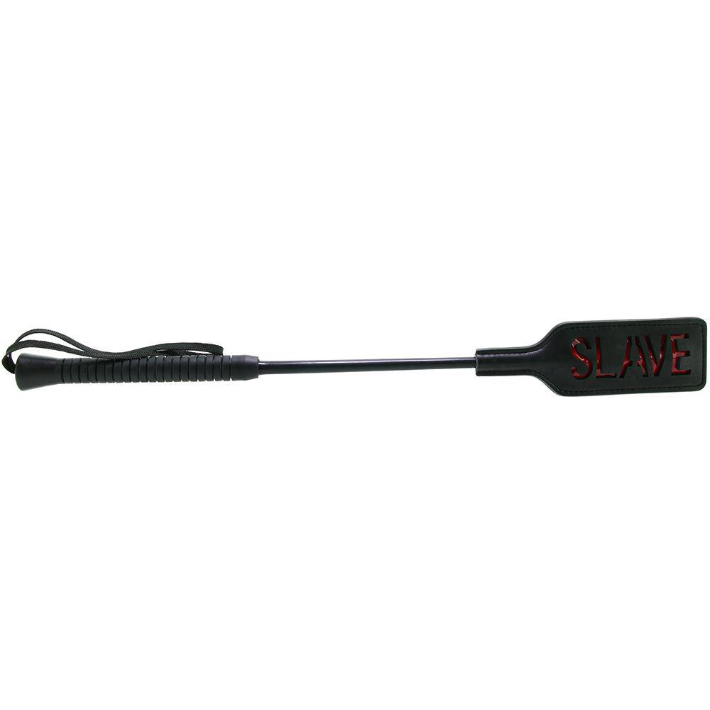 Nice and firm in hand, this ultra sturdy tool spanks, slaps and (playfully) stings with precision. Red patent-accented lettering on one side of the flat rectangular tip might just leave itsr mark, while the smoother side opposite delivers a gentler sensation. A nice long wrist cord keeps the SLAVE Crop close at all times.