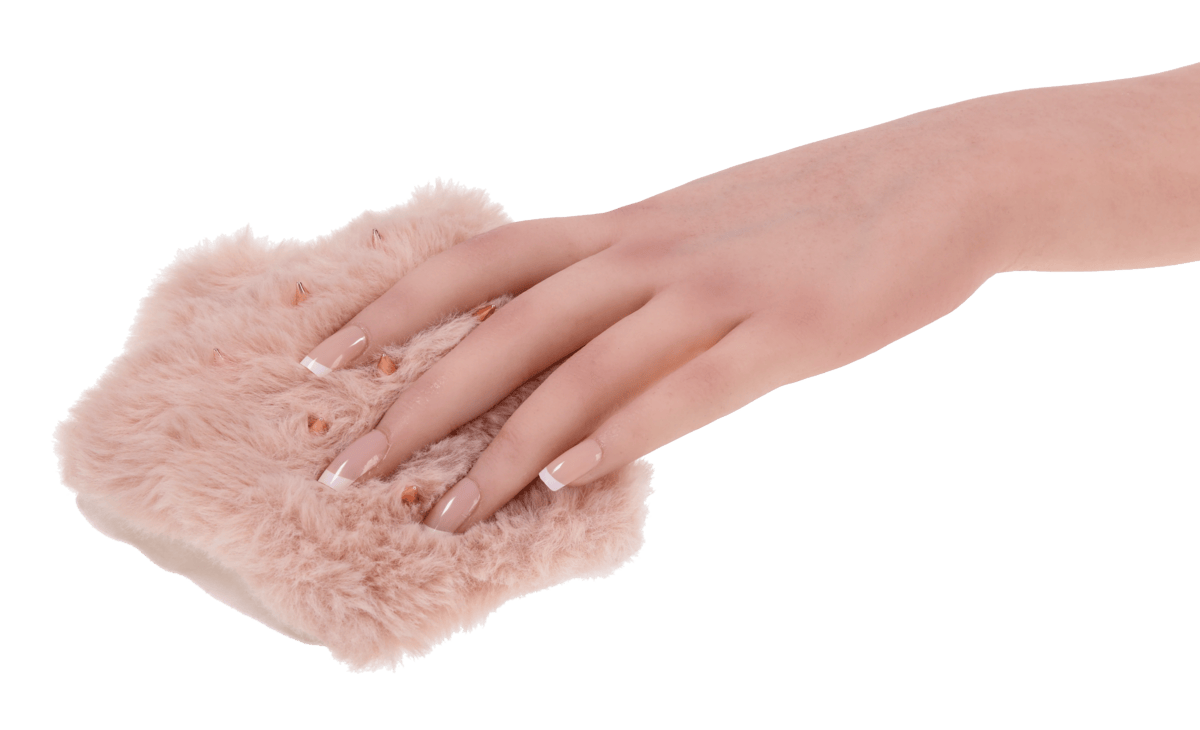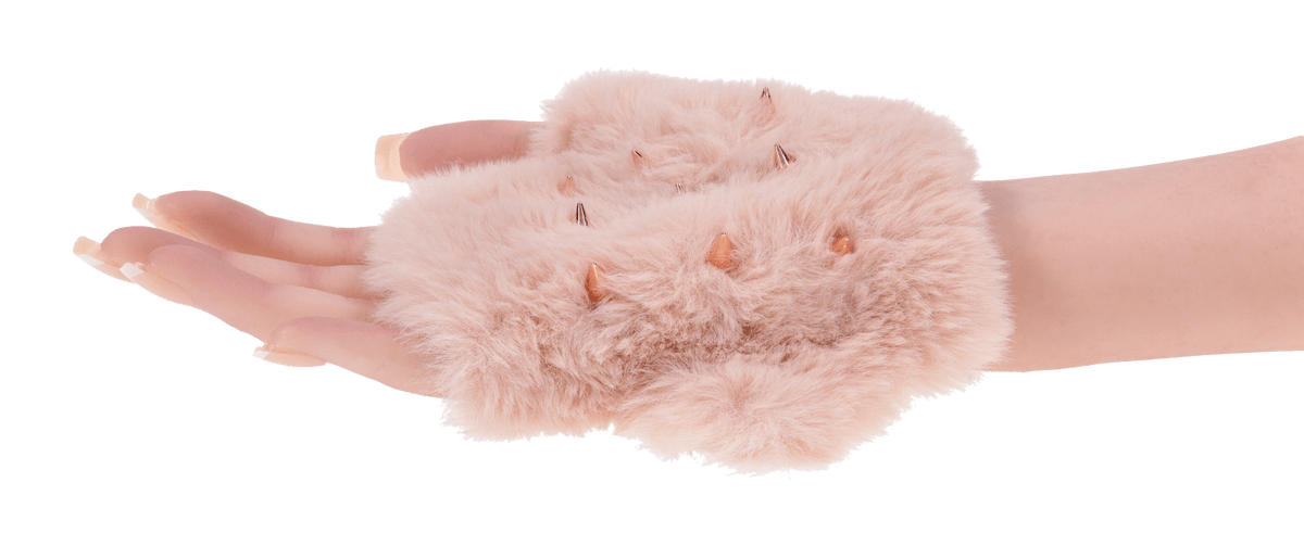 - Material: Faux fur palm, Lycra back, rose-gold spikes