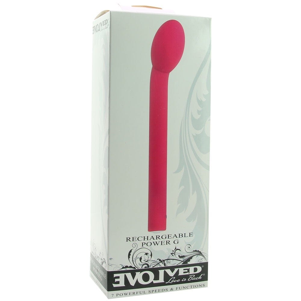 Evolved's Rechargeable Power G Vibe changes nothing in the way of sweet-spot targeting shapeliness, in-or-out versatility, top of the line construction or super-powered vibration. What's different about this vibe is a 7 mode menu of rumbly toe-curling vibration rhythms, USB charge capability and fully waterproof construction. We're good with those changes!
